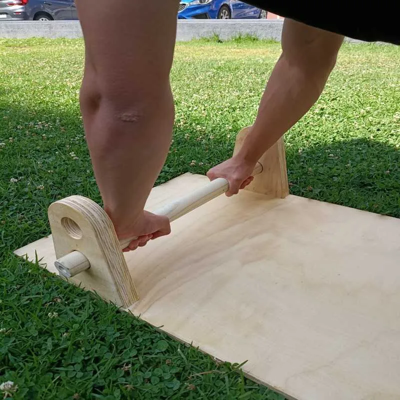 Fabricada en madera resistente, esta plataforma de 100 x 50 cm ofrece una base estable y cómoda. Su sistema de barra ajustable en 2 posiciones permite adaptarse a diferentes usuarios y niveles de dificultad, facilitando una correcta ejecución del ejercicio.